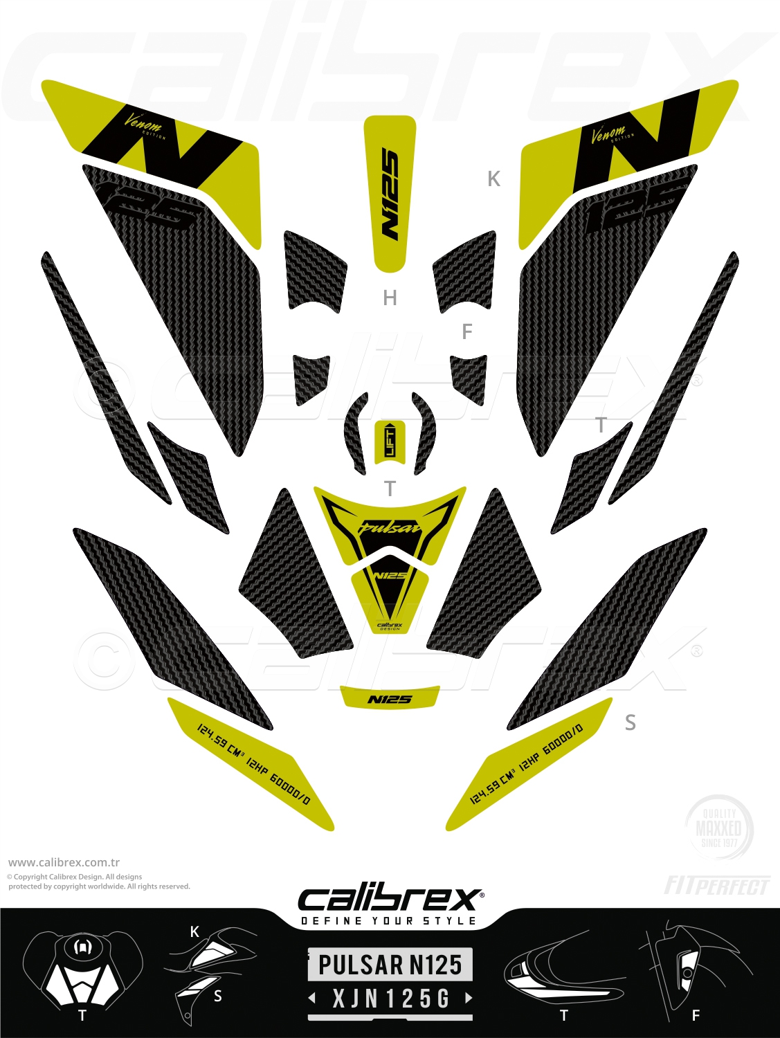 Bajaj Pulsar N125 2025 Tank Pad – Knee Pads – Tail Pads Green Carbon Calibrex XJN125G