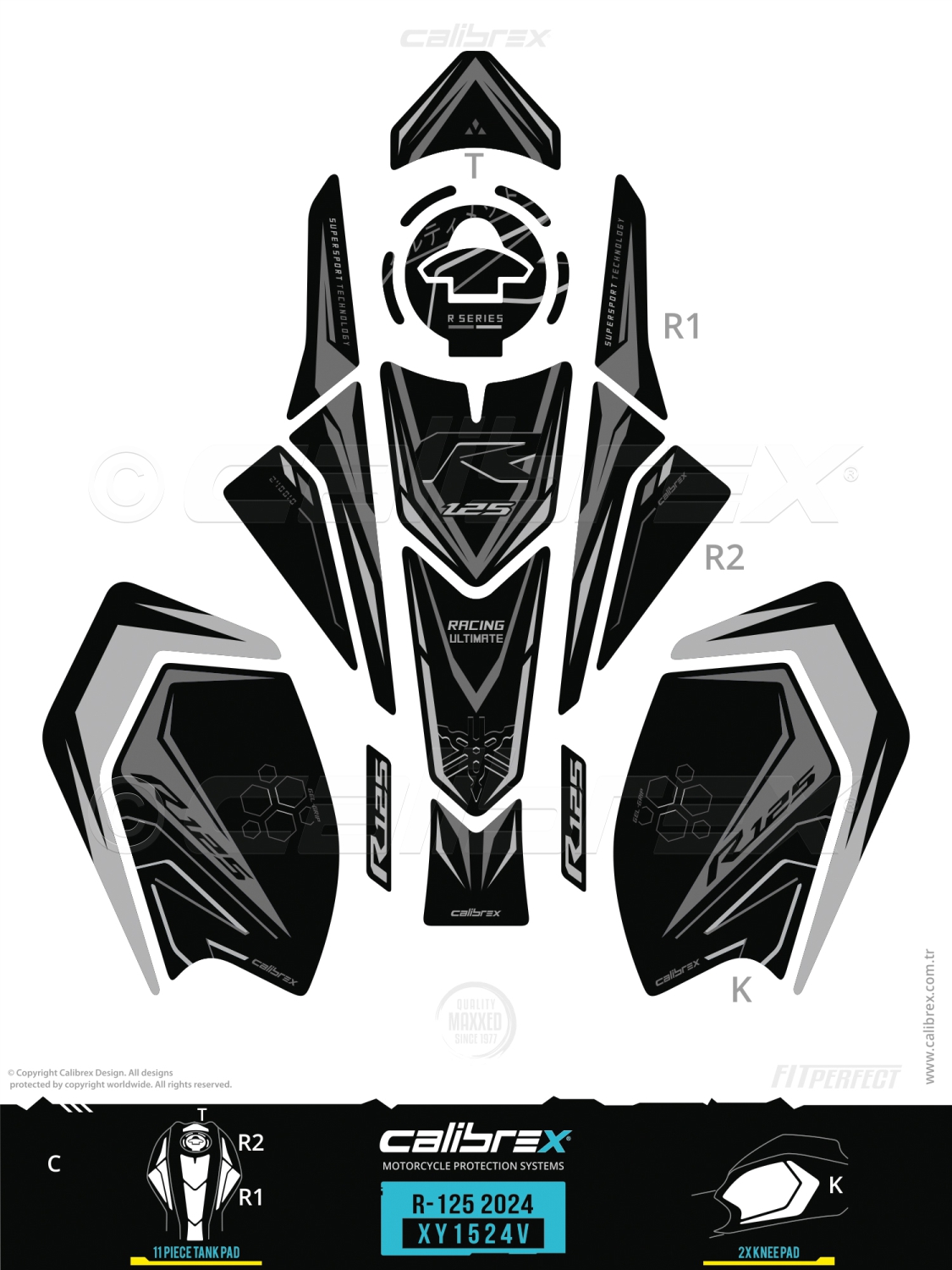 Yamaha R-125 2024-2025 Tank Pad Midnight Black Calibrex XY1524V